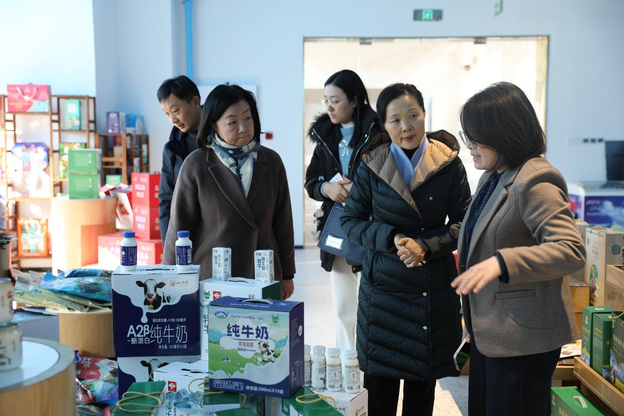 座談前,大家參觀了位于新立訊總部一層正在籌建的“東西部(蘇青)協(xié)作農(nóng)產(chǎn)品展銷中心”,展示了青海“青品好物+西部優(yōu)選”系列產(chǎn)品:藍雀山、羊羔花、牦牛肉、藏羊肉、湟魚菜籽油、鎖鮮枸杞、雪山牦牛奶、青海湖純牛奶、冬蟲夏草等高原特色農(nóng)產(chǎn),在 “東產(chǎn)西送 西產(chǎn)入東”農(nóng)產(chǎn)交易數(shù)字大屏上,實時顯示青海、華東、川藏農(nóng)產(chǎn)交易中心農(nóng)產(chǎn)交易數(shù)據(jù)信息。