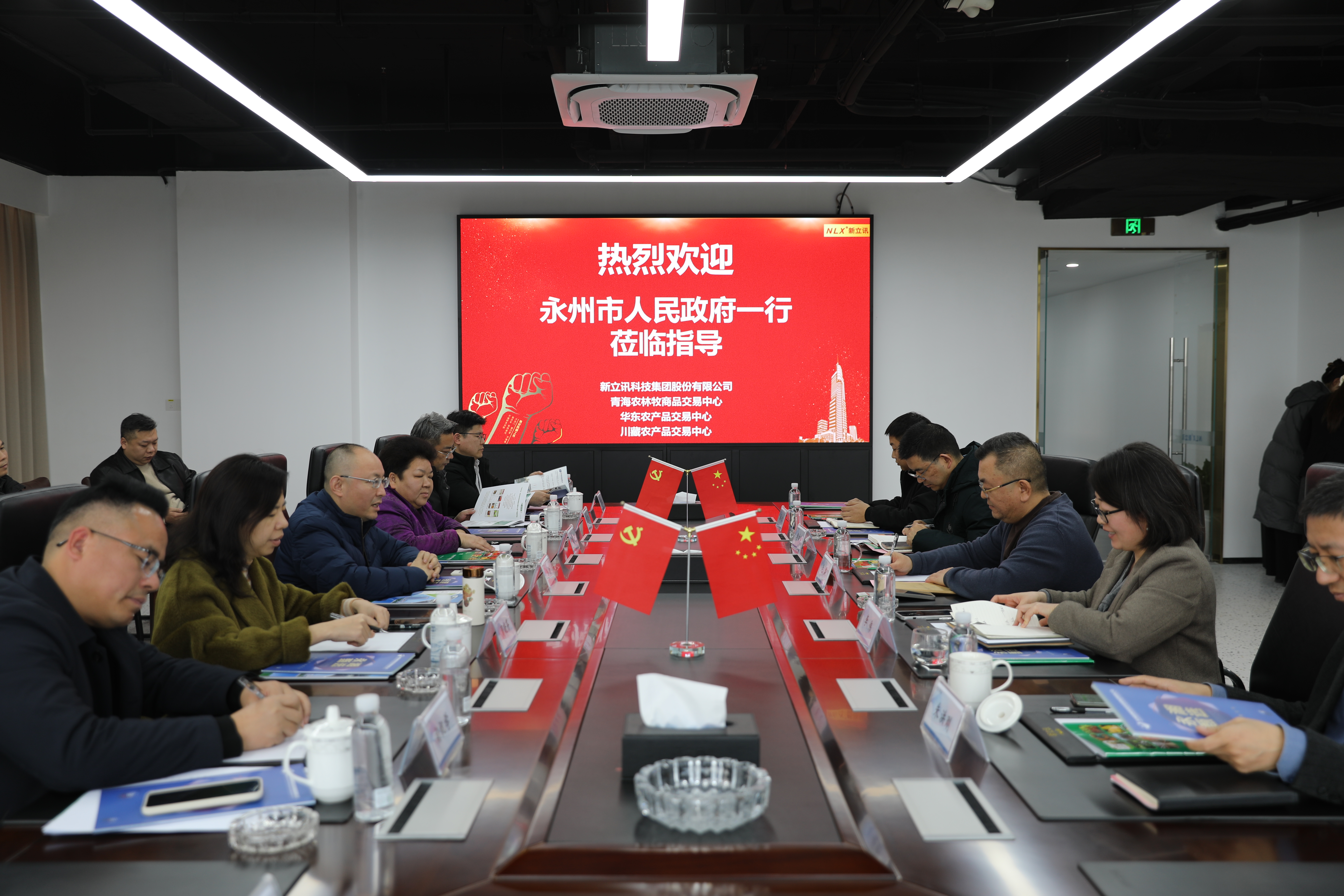 2026年1月27日,永州市人民政府副市長(zhǎng)李欽,永州市農(nóng)業(yè)農(nóng)村局局長(zhǎng)唐慧云,永州市商務(wù)局局長(zhǎng)周曉芬,永州市港發(fā)集團(tuán)供應(yīng)鏈公司董事長(zhǎng)陳震源,永州市農(nóng)業(yè)綜合服務(wù)中心主任楊祝學(xué)及永州商會(huì)副會(huì)長(zhǎng)魏世喜等調(diào)研新立訊總部。新立訊科技集團(tuán)董事長(zhǎng)(兼青海、華東、川藏農(nóng)產(chǎn)品交易中心董事長(zhǎng))毛霖,常務(wù)副總經(jīng)理李偉及集團(tuán)農(nóng)產(chǎn)業(yè)互聯(lián)網(wǎng)團(tuán)隊(duì)陪同調(diào)研。