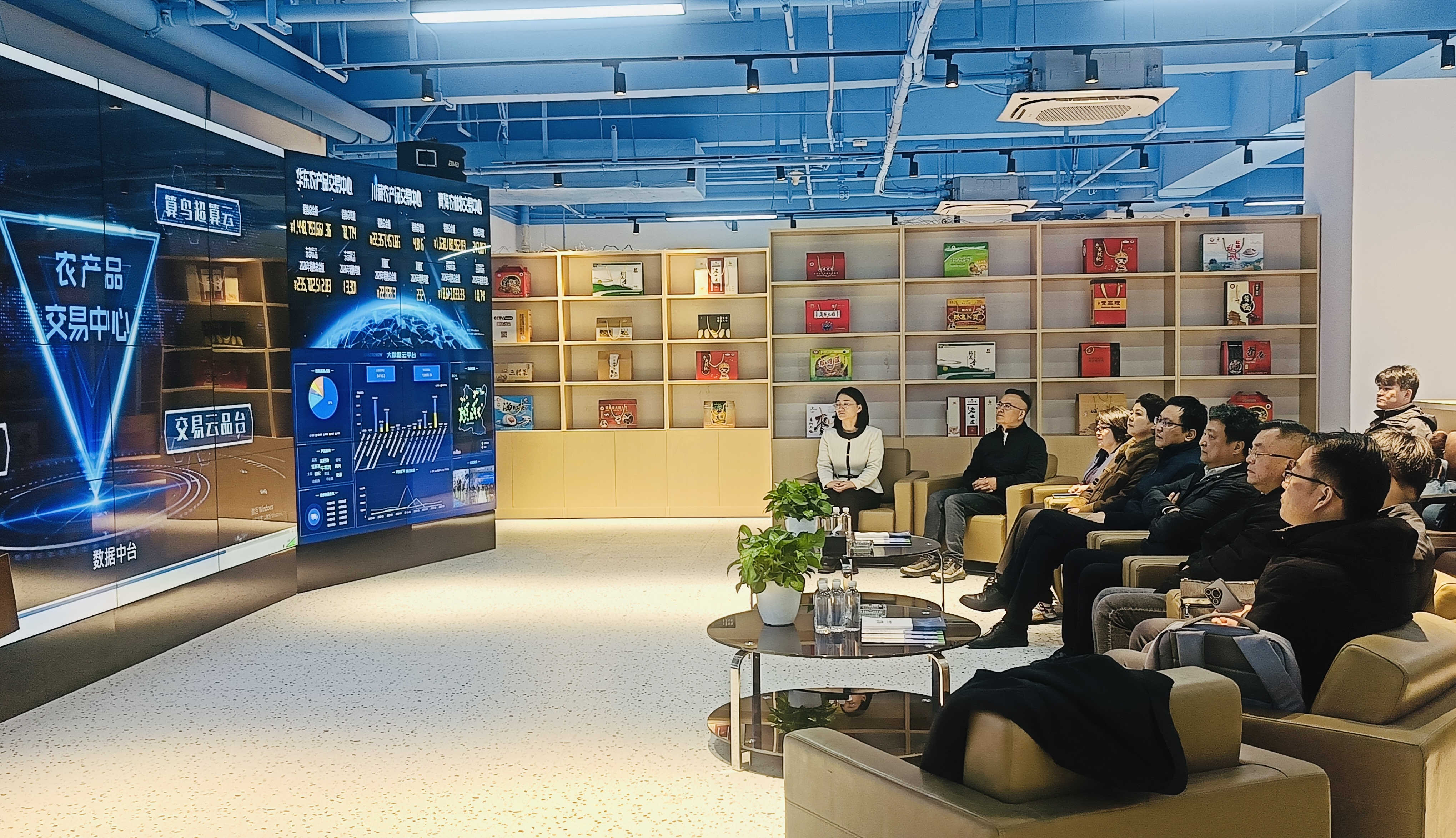 座談前,大家參觀了位于新立訊總部一層正在籌建的“東西部(蘇青)協作農產品展銷中心”,集中展示青海“青品好物+西部優選”系列產品:藍雀山、羊羔花、牦牛肉、藏羊肉、湟魚菜籽油、雪山牦牛奶、青海湖純牛奶、冬蟲夏草、沙棘等高原特色農產。