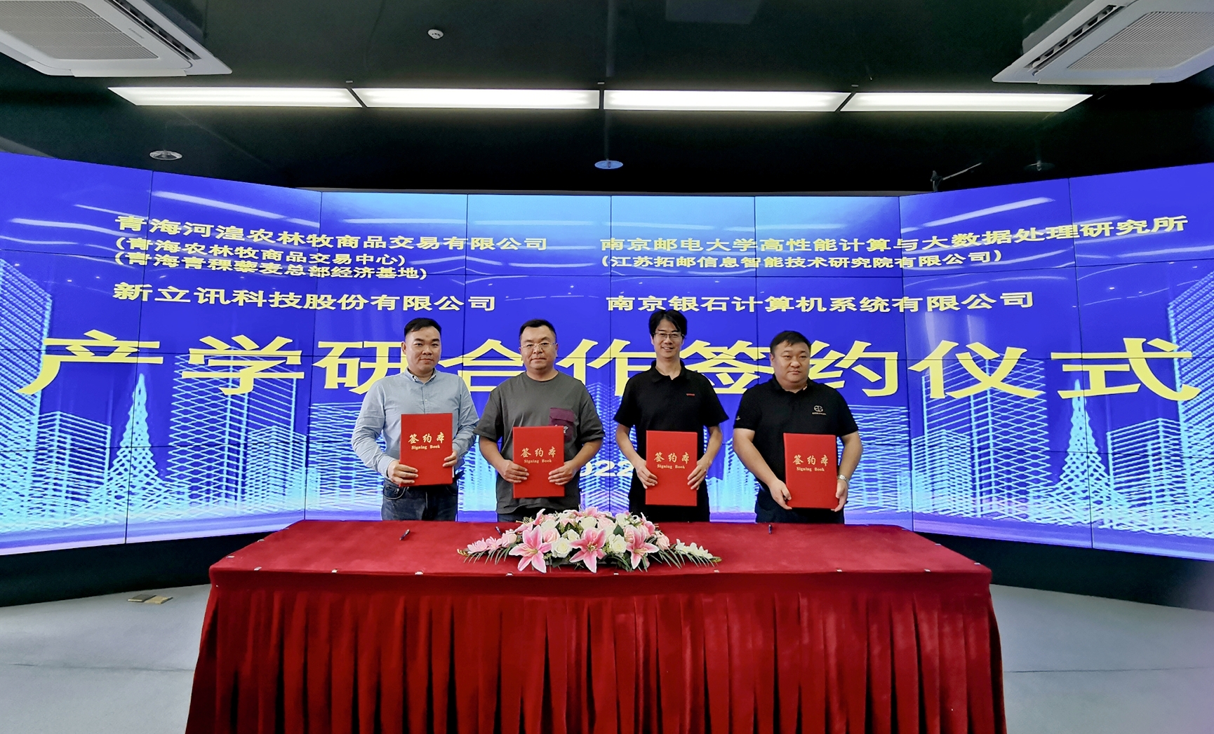 新立訊與南京郵電大學高性能計算研究所、青海農林牧商品交易中心、銀石計算機共同簽署“產學研合作協議”