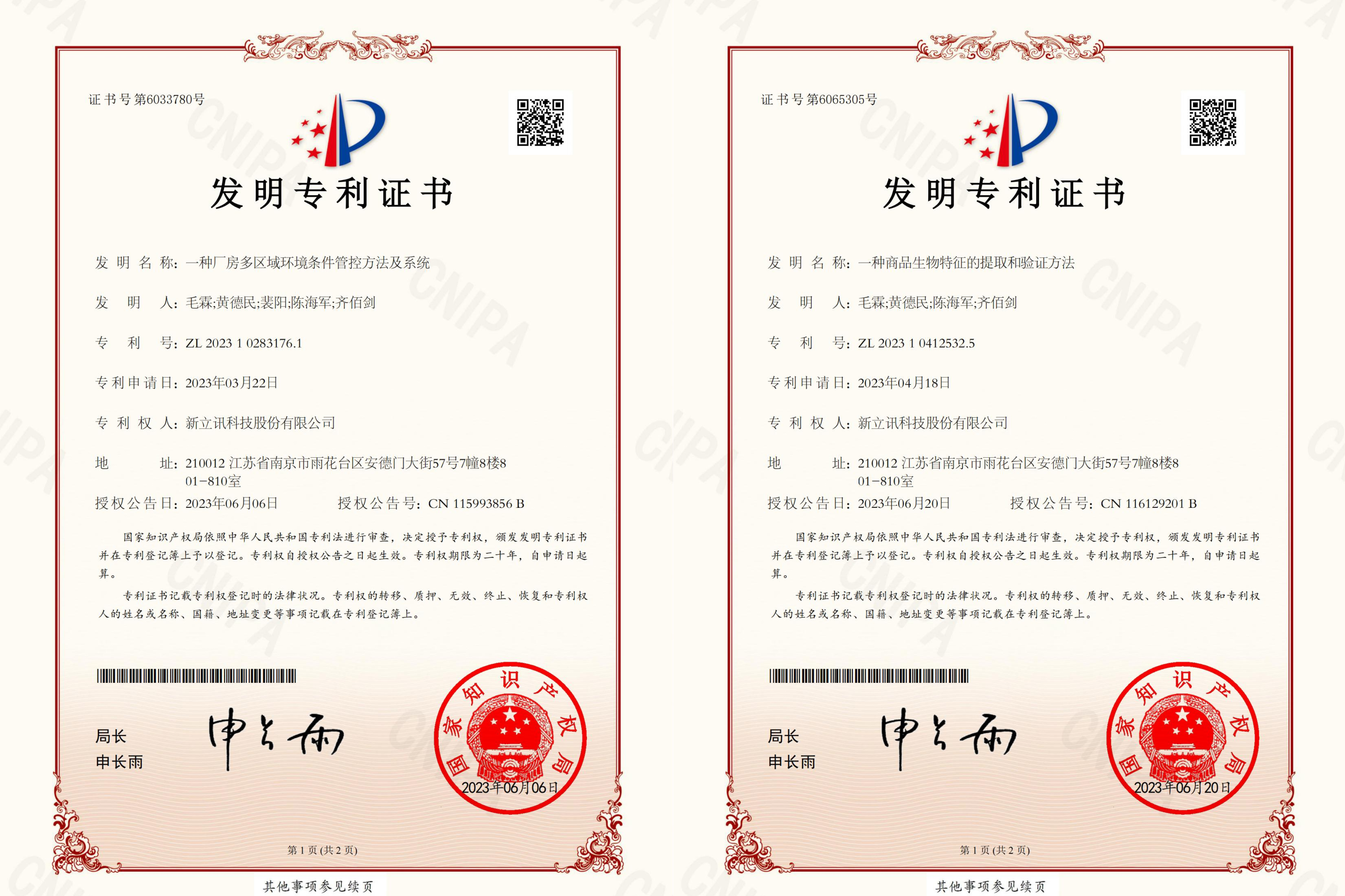 6月,新立訊知識(shí)產(chǎn)權(quán)領(lǐng)域新獲兩項(xiàng)發(fā)明專利,分別是“一種商品生物特征的提取和驗(yàn)證方法”(專利號(hào):ZL202310412532.5),“一種廠房多區(qū)域環(huán)境條件管控方法及系統(tǒng)”(專利號(hào):ZL202310283176.1)和,均為我司原始取得,是技術(shù)創(chuàng)新和研發(fā)方面取得的重要成果。