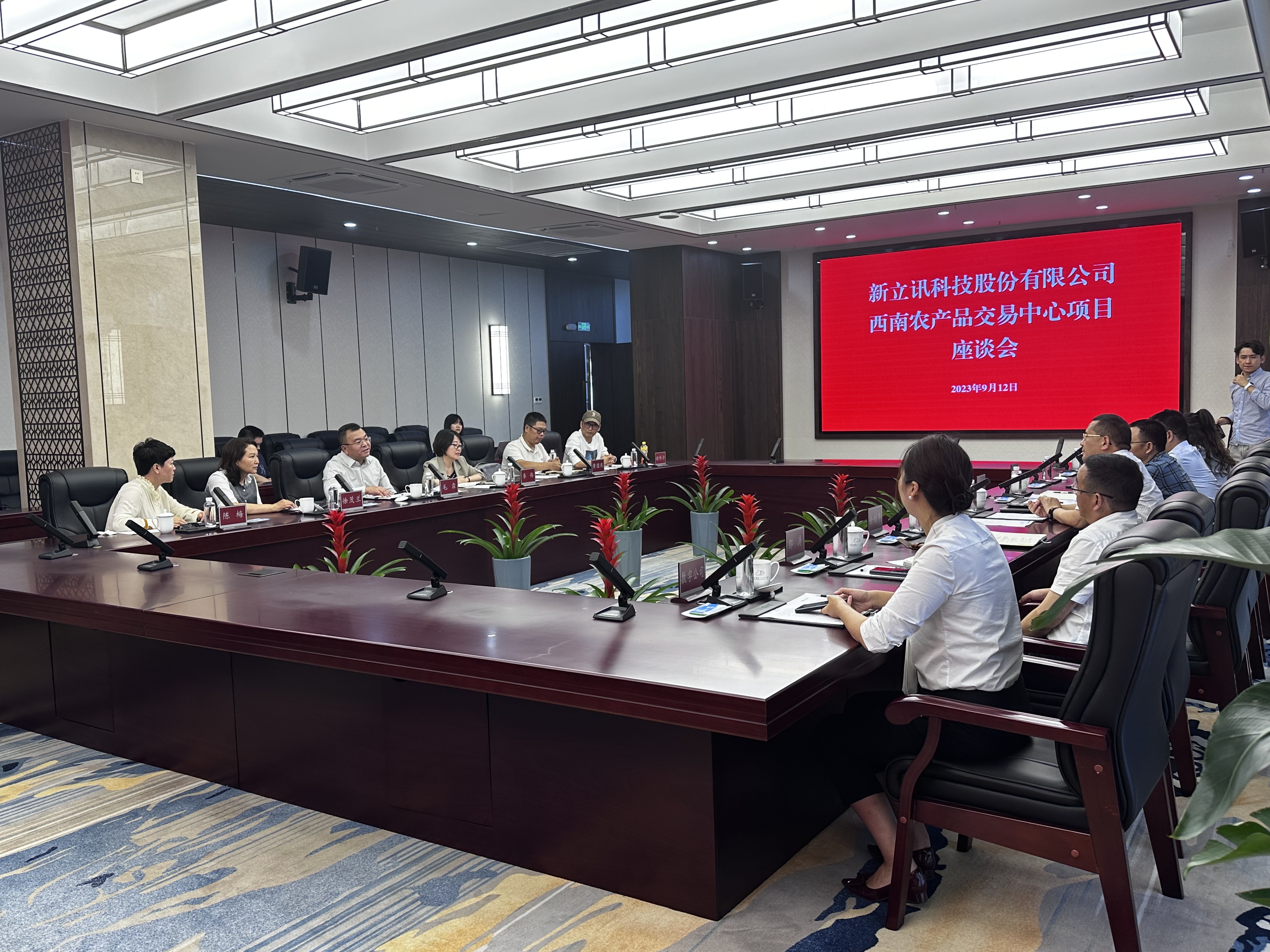 2023年9月12日,新立訊及青海農(nóng)林牧商品交易中心、華東農(nóng)產(chǎn)品交易中心董事長兼總經(jīng)理毛霖、新立訊副總經(jīng)理李偉一行赴四川雅安市大數(shù)據(jù)產(chǎn)業(yè)園進(jìn)行實(shí)地考察,雅安市政協(xié)副主席,雅安經(jīng)開區(qū)黨工委副書記、管委會(huì)主任李陽軍,雅州新區(qū)管委會(huì)黨工委委員、管委會(huì)副主任、二級巡視員余剛平,四川雅州新區(qū)發(fā)展集團(tuán)黨委副書記、總經(jīng)理周顯祥等領(lǐng)導(dǎo)會(huì)見毛霖一行并舉行座談。